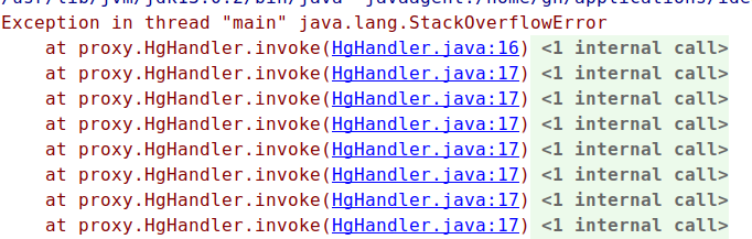 结果发现堆栈溢出,这是什么操作,仔细想想,就是目前proxy还没有确定自己所代理的对象,然后又将他强转为Student,而代理又去找自己的代理,无限找下去,当然会溢出了
