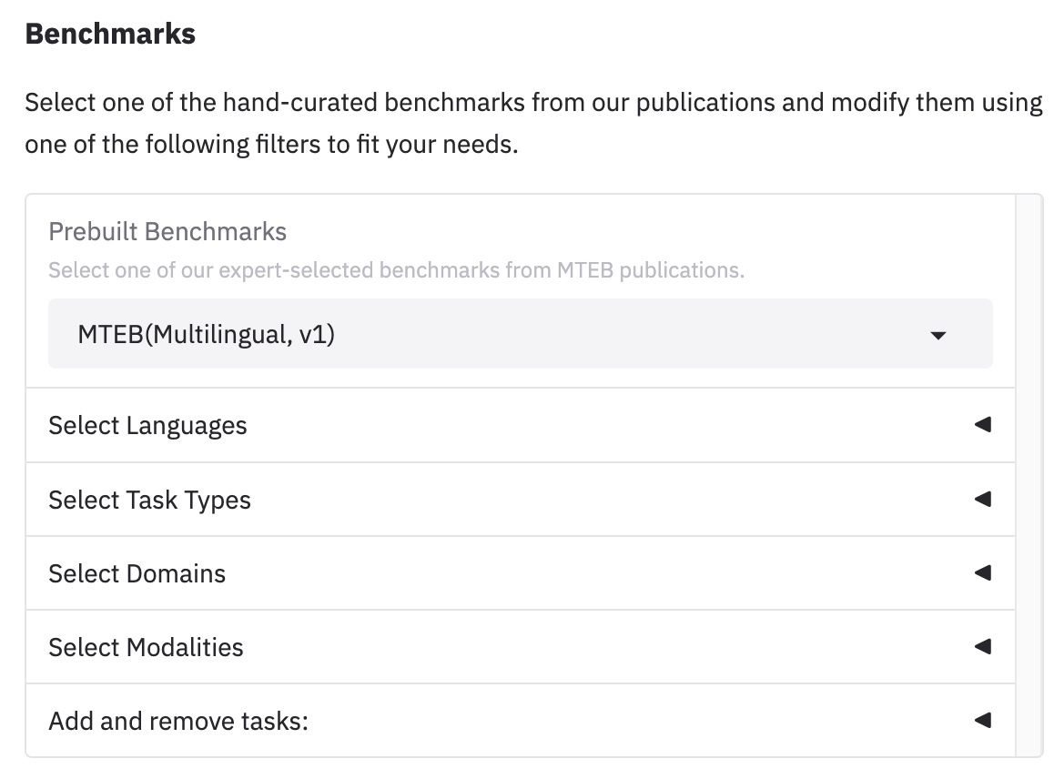 这个页面默认显示的所有嵌入模型的排名,如果你只想看特定领域排名情况,需要过滤: