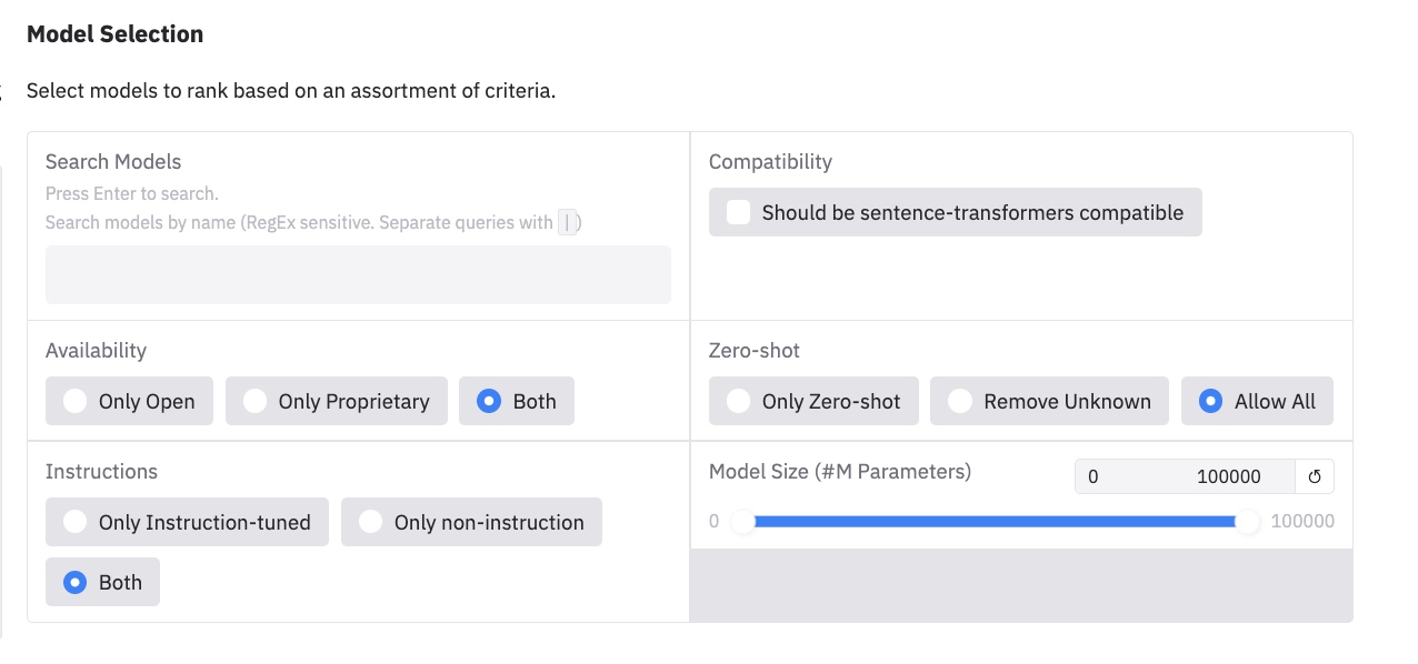 - Only non-instruction (仅非指令): 只显示那些没有经过指令微调的标准预训练模型或嵌入模型。