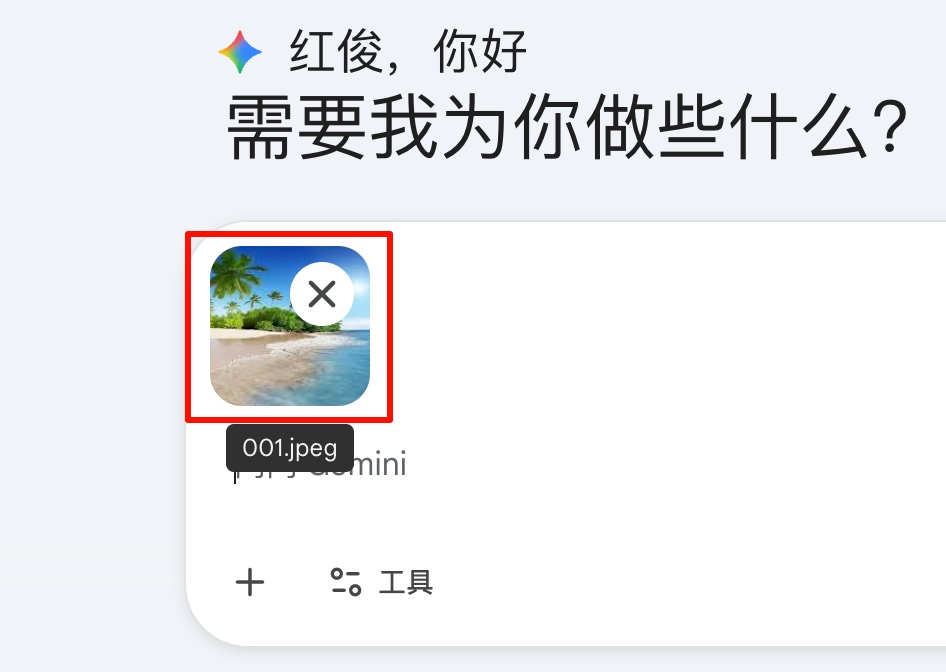 在 Gemini 上传一张图片,注意先不要按提交键。