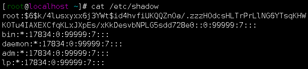 | 内容 | root | *!!(没有密码) | 17834 | 0 | 99999 | 7 | 2 | 6627567 | 空 |