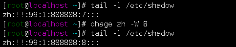 -W:设置密码更改警告天数,将过期天数设为警告天数