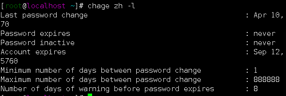 -d :设置最近一次更改密码时间,0下次登录系统强制修改密码