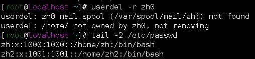 # 删除用户,默认情况下,只删除用户本身,其他相关目录文件不会删除