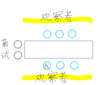 面试前的座位是自己选的,我选的是6号位,算比较靠近中间的位置,但后来就成了最后一个发言的了。现在看来选座位似乎有点讲究,我旁边的人坐得太远了,很难和面试老师有眼神交流。