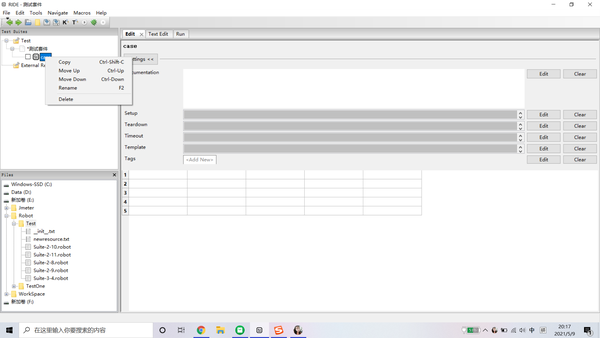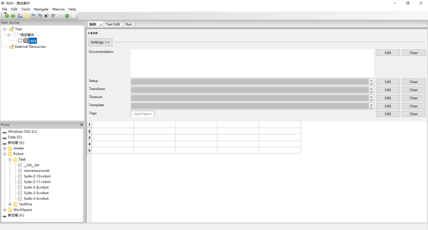 在“测试套件”上单击鼠标右键,弹出快捷菜单,单击“New Test Case”命令,输入案例名称为case,如下图所示:
