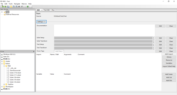 在Test(工程)上单击鼠标右键,弹出快捷菜单,选择“New Suite”命令,建立一个测试套件,如下图所示: