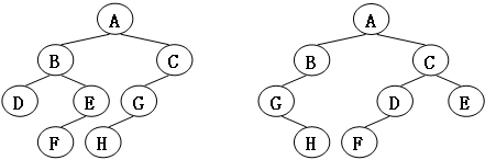 给定两棵树T1和T2。如果T1可以通过若干次左右孩子互换就变成T2,则我们称两棵树是“同构”的。例如图1给出的两棵树就是同构的,因为我们把其中一棵树的结点A、B、G的左右孩子互换后,就得到另外一棵树。而图2就不是同构的。