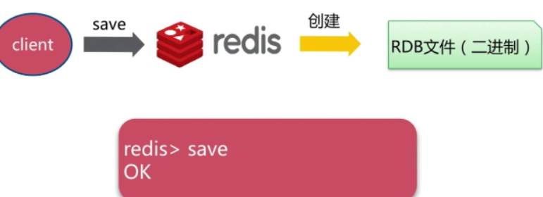 客户端发送一个save命令,redis就会创建一个RDB的二进制文件,有一个问题,save是同步的,可能会造成阻塞