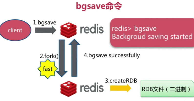 让子进程完成了一个RDB文件的生成,当我们的文件生成后,子进程会告诉主进程文件创建成功,就客户端来说只是执行了一个bgsave命令