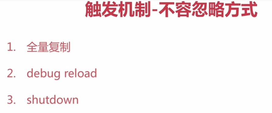 触发机制:没有执行save或者bgsave,生成了rdb文件