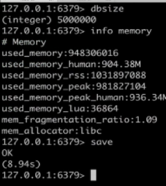 redis中有5000000条数据,已经使用了904.38M,此时执行save命令