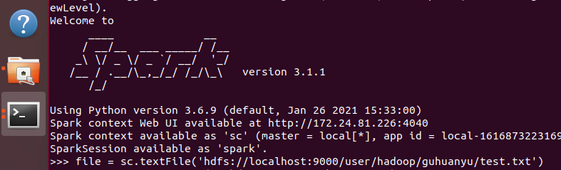 1.准备文本文件,从文件创建RDD lines=sc.textFile(),筛选出含某个单词的行 lines.filter(),lambda 参数:条件表达式