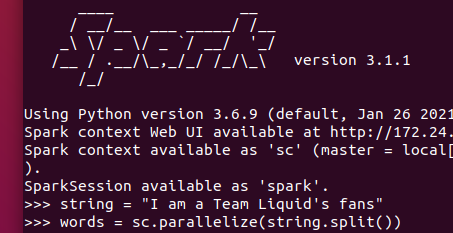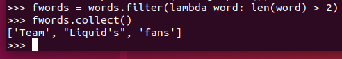 2.生成单词的列表,从列表创建RDD words=sc.parallelize(),筛选出长度大于2 的单词 words.filter()