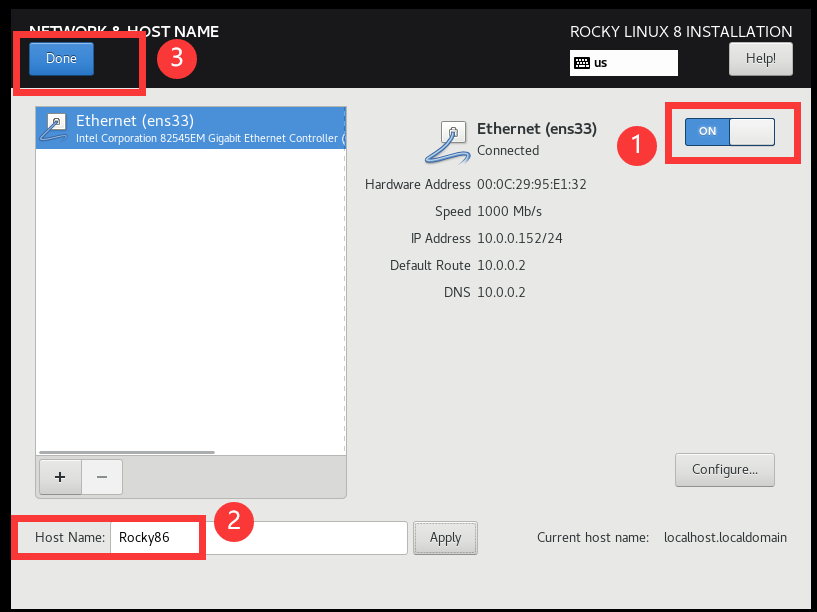 开启网络,设置主机名: