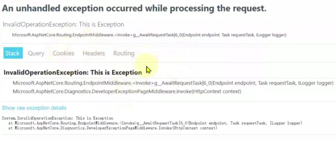 .UseDeveloperExceptionPage()//开发者异常页面中间件