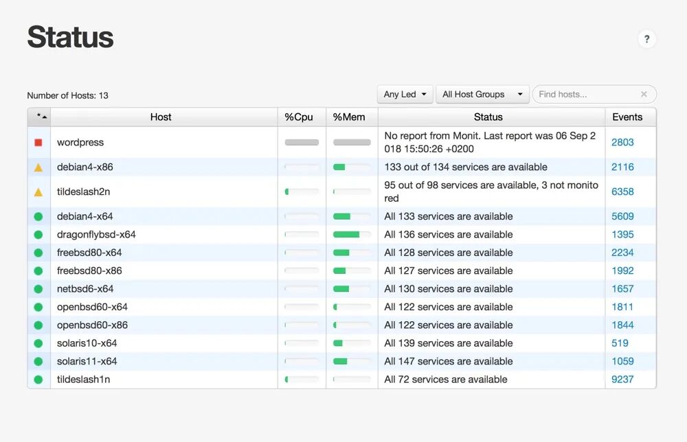 有时,我们线上运行的项目进程可能因为某些意外而退出,而且没有被任何人及时发现,这可能会对团队造成巨大的损失。为了保证线上项目的高可用,可以开启进程监控,当项目进程退出时,自动重启该进程并且向负责人发送告警,一定程度上减少了事故的影响,也省去了手动重启进程的操作。可以自己编写进程监控脚本,也可以使用一些现成的监控程序,比如 Supervisor 和 Monit 等。Monit 监控