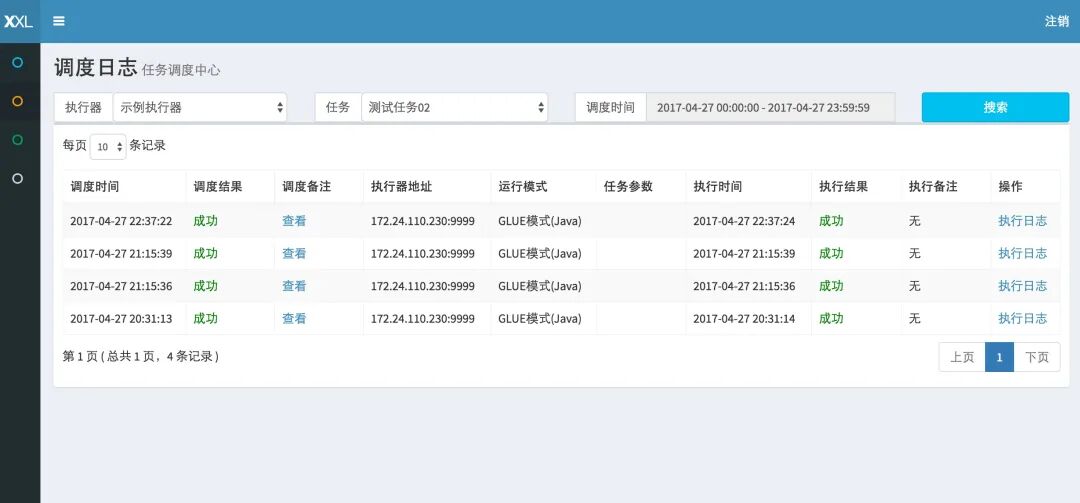 在日常开发中,少不了执行定时任务,比如每天检测数据是否正常、定时发送邮件、同步数据等。如果把这些任务都写死在代码中去执行,即使用一些定时任务框架,当任务多了,也会变得难以管理。而且无法控制任务的执行状态,还有可能导致一些单次任务的重复执行,造成风险!因此,需要统一的任务调度平台来管理任务。可以通过平台界面实时查看各任务的执行情况,还能够灵活地控制任务的启停、执行参数、超时时间等。甚至可以将任务调度到多台机器同时执行。降低风险的同时提升了管理定时任务的效率。有一些优秀的开源任务调度平台如 Elastic Job 和 XXL-JOB,可以直接搭建使用。XXL 任务调度平台