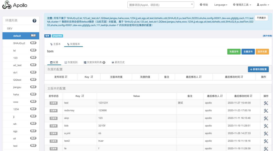 任何项目都离不开配置,比如数据库连接密码、第三方服务调用地址等。如果把配置都写死在代码中,或者是项目包里的配置文件中,当配置需要修改时,我们就不得不修改项目文件,提交代码,重新打包,再发布上线,非常麻烦。而且有些时候,由于多个项目使用了相同的配置,在改动一行配置时,可能要去修改多个项目,不仅麻烦,而且存在漏改的风险。因此,我们需要一个配置中心来集中管理那些经常变化的、同时被多个项目使用的配置。比较好用的配置中心有携程的 Apollo、阿里的 Nacos 等,可以直接在界面上创建和发布配置,还能对配置进行版本控制,灵活地升级和回退。使用配置中心能够提升配置管理的效率,同时避免重复地改动项目的配置文件。携程 Apollo 配置中心