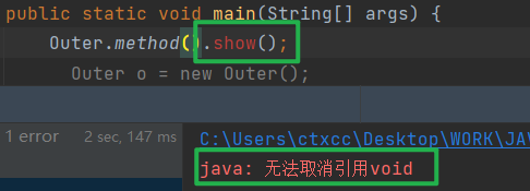 1 public class test { 2 public static void main(String[] args) { 3 Outer.method().show(); 4 } 5 } 6 7 interface Inter { 8 void show(); 9 } 10 class Outer { 11 // 编写程序 12 }