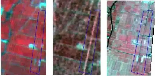 研究采用的分类算法包括最大似然(MLC)、人工神经网络(ANN)和支持向量机(SVM)三种方法。环境星多光谱数据与 ASAR VV 极化数据融合后信息量有所增加,相比于环境星数据,其与ASAR 数据融合后图像的层次更加分明,不同地物之间的差别更加明显。虽然 ASAR 数据与环境星数据的空间分辨率相同,但是由于 ASAR VV 极化数据对于田块边界更加敏感,使得融合后田块的边界比环境星要更加明显。
