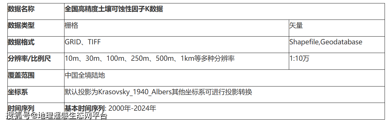全国高精度土壤可蚀性因子分布数据