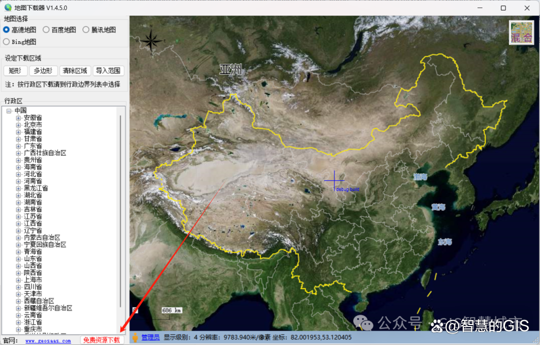 从GeoSaaS官网下载“GIS地图下载器”软件:http://GeoSaaS.COM ,安装完成后桌面上出现”GIS地图下载器“图标。