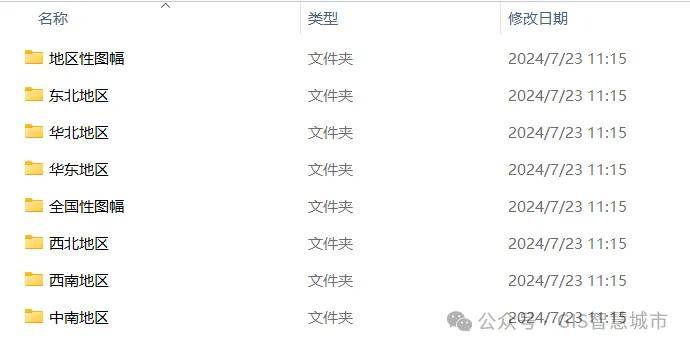 数据来源于中国地质科学院,图集由全国性图幅和地区性图幅组成,各省区按前六大行政区进行分类,共55张图片,如下图所示。