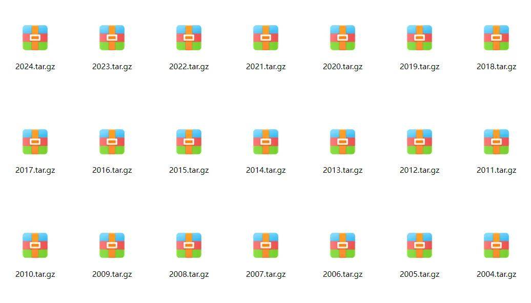 气象数据按年份打包,一个压缩包是全球所有站点一年的数据