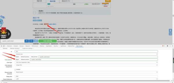 8,点进去跳转到酒店详情页面,找到联系方式,这时候我们发现,联系方式需要点一下才会显示号码,于是我们得让它还能自动帮我们点击一下,这时候可以在link里面再创建两个子集,一个用于点击显示联系方式,一个用于爬取号码