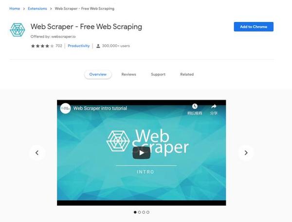 如果你能上外网的话,可以在浏览器直接打开Chrome应用商店,然后搜索“Web scraper”后直接点“Add to Chrome”装进浏览器里。不能上的话,可以通过装一个谷歌上网助手插件就可以上谷歌应用商店了,或者通过获取离线CRX安装包改成Zip格式,解压后加载进浏览器里。装好后就可以在右上角看到一个类似蜘蛛网的图标