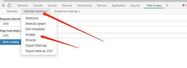 在Sitemap xiecheng里面点Scrape,弹出的页面默认值都是2000可以不用去管它,