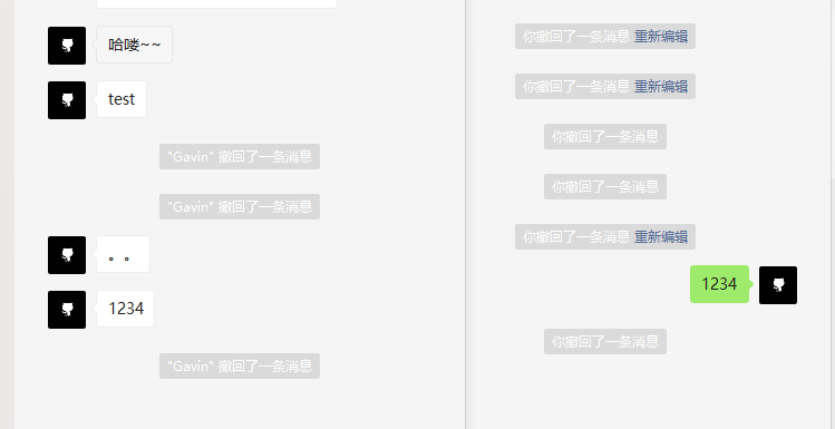 微信 实际效果:对方撤回消息后,将在当前聊天记录最下方显示“xxxx 撤回了一条消息”(正常情况下是显示在撤回的那条消息下方的),但是实际消息仍旧存在。