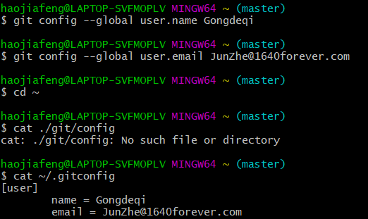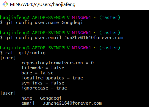 n 系统用户级别:登录当前操作系统的用户范围信息保存位置:./.git/config 文件