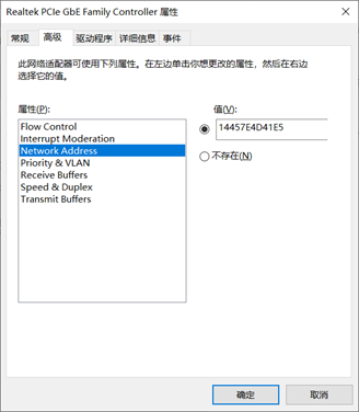 5、。。。。。。。最终,偶然间在ipconfig /all下看到物理地址竟然全是0。物理地址一般是6字节的,这个不合常理手动设置一下,从下图可以看到物理地址选择的是不存在