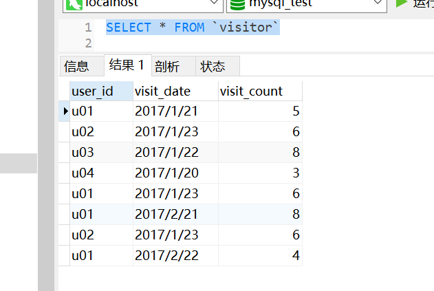 select user_id,DATE_FORMAT(replace(visit_date,'/','-'),'%Y-%m')as mn,visit_count from visitor)as a GROUP BY user_id,mn