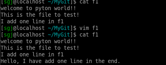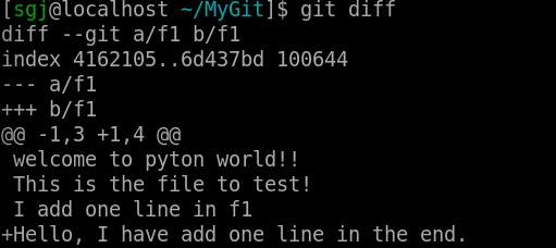 暂存区的文件是没有最后一行的,本地的文件f1新增了一行
