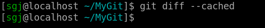 使用git commit -m "Input commit message"将暂存区文件f提交到工作树之后,三个区域的文件f就是相同的文件,此时使用命令git diff 和git diff --cached将不会有任何的显示