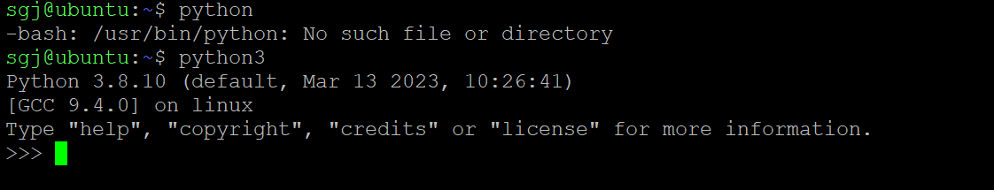 问题描述:安装好Ubuntu20.04之后,想使用python,只能输入python3,输入python没有用处,如下图