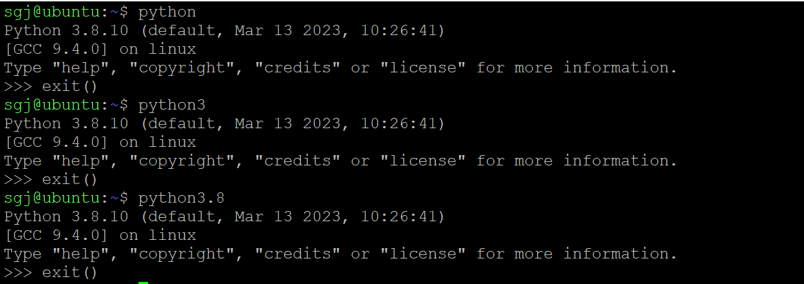 4.至此,在任何地方,执行命令python或者python3或者python3.8都可以使用python了