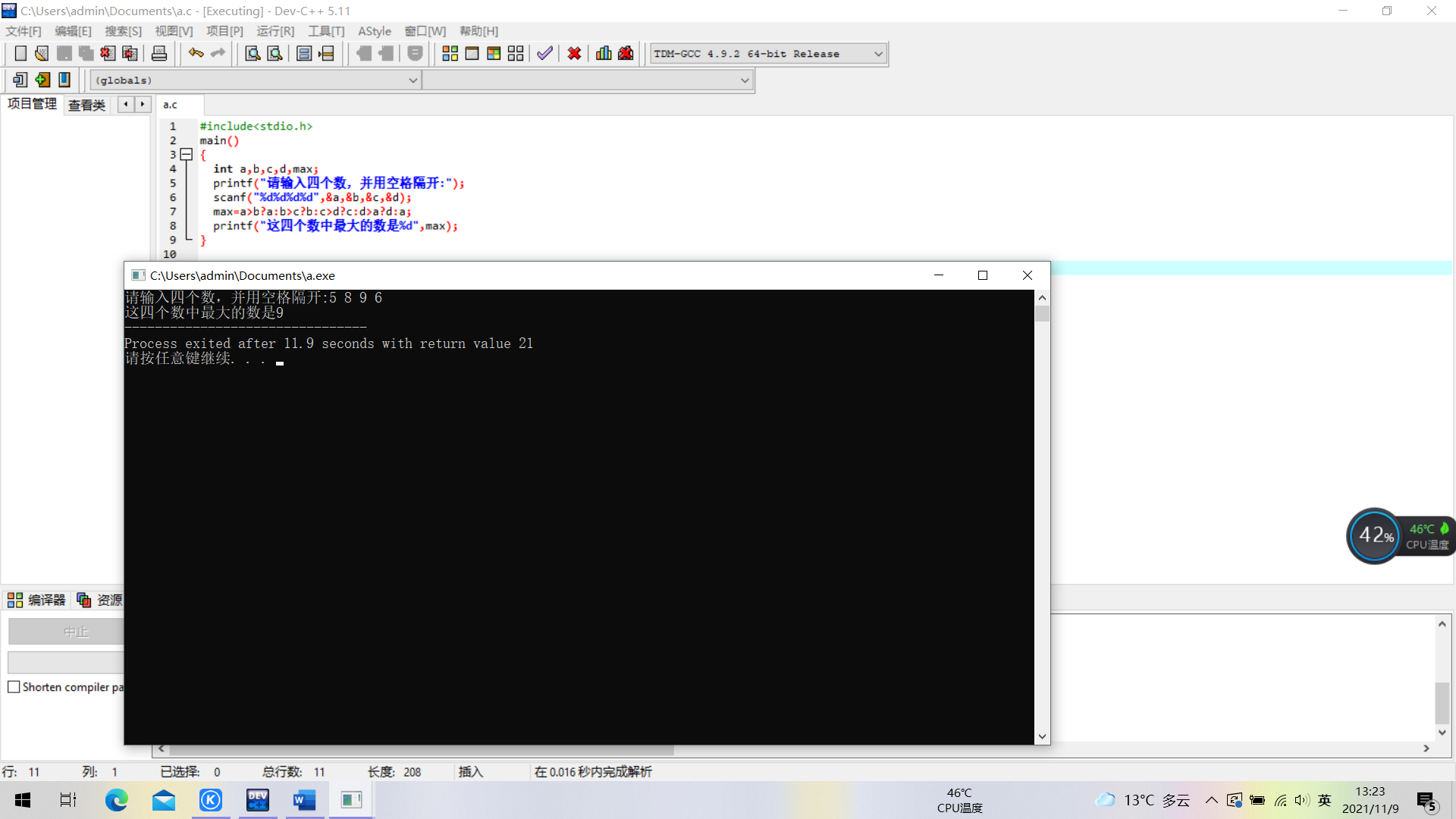 2. 使用条件运算符,找出a,b,c,d四个数中最大的数。