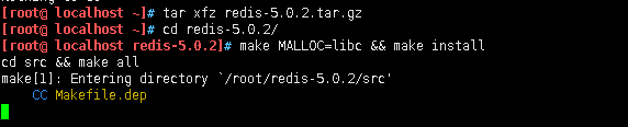 tar zxf redis-5.0.2.tar.gz cd redis-5.0.2/ make MALLOC=libc && make install