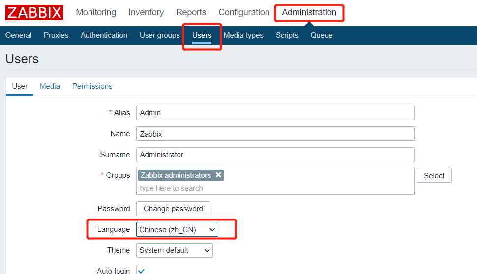 如图,将Lanhuage改为"Chinese(zh_CN)",然后点击最下面的"update"按钮。然后重新刷新一下页面,web端就会汉化。
