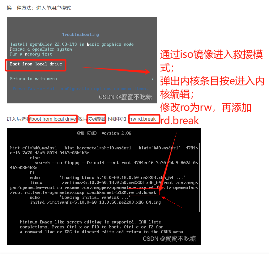如果上述方法无法进入系统救援模式,可以尝试下列方法。
