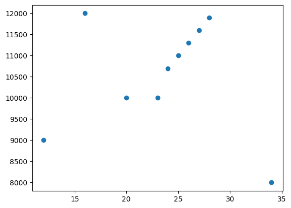 # 第三次导入数据文件incom.csv # 数据集更新 # 第三次导入数据文件,定义原数据gbk编码格式 data = pd.read_csv('./income.csv', encoding='gbk') # 输出数据表 data # 输出结果 number name education income 0 1 张三 20 10000 1 2 李四 12 9000 2 3 王五 34 8000 3 4 魏斌 16 12000 4 5 王红 23 10000 5 6 小新 24 10700 6 7 小玲 25 11000 7 8 小明 26 11300 8 9 小白 27 11600 9 10 小微 28 11900 # 定义x轴参数education列值