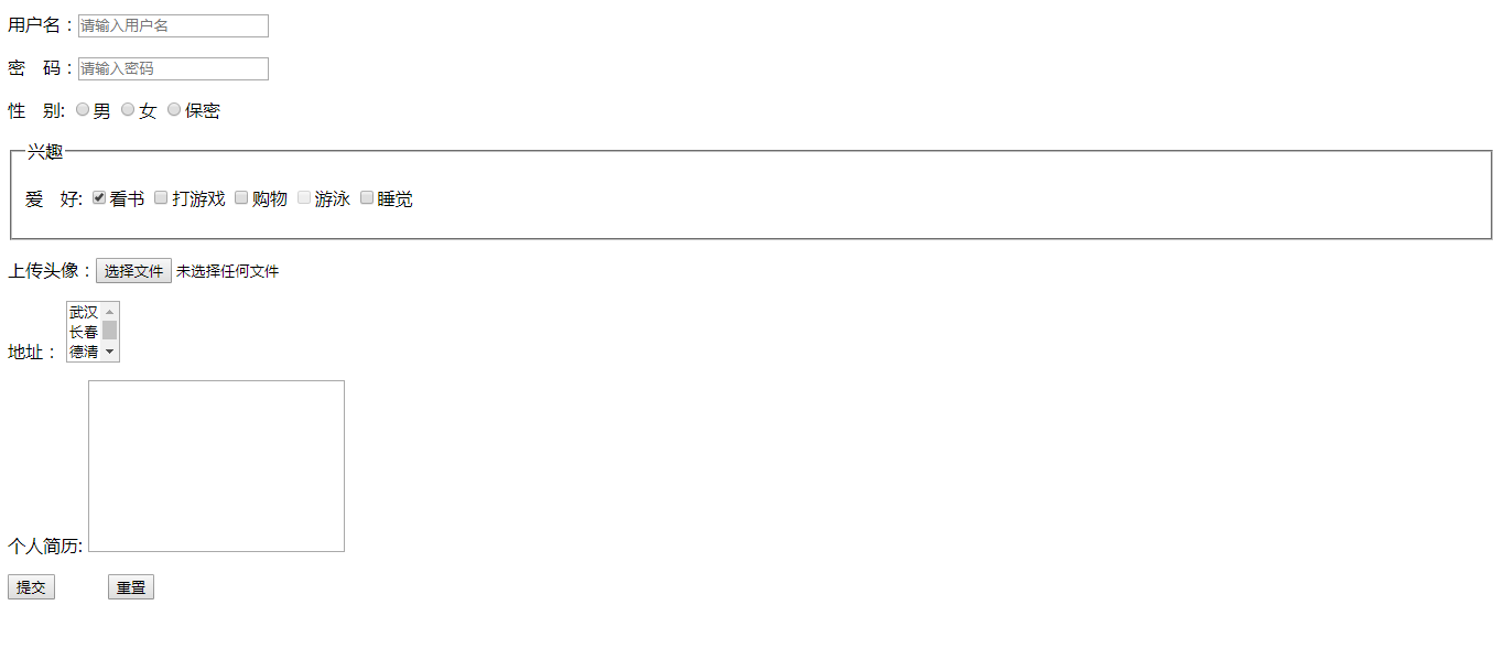 51 <p><input type="submit" value="提交">   <input type="reset" value="重置"></p>