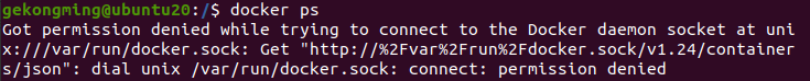 ERROR: Got permission denied while trying to connect to the Docker daemon socket at unix:///var/run/docker.sock: Get "http://%2Fvar%2Frun%2Fdocker.sock/v1.24/info": dial unix /var/run/docker.sock: connect: permission denied