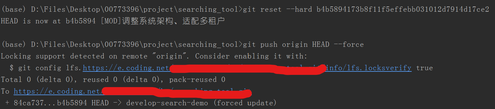 - 然后 git reset 版本号,如 git reset --soft d73a0f438c8a2653398d51d8803086c256151662