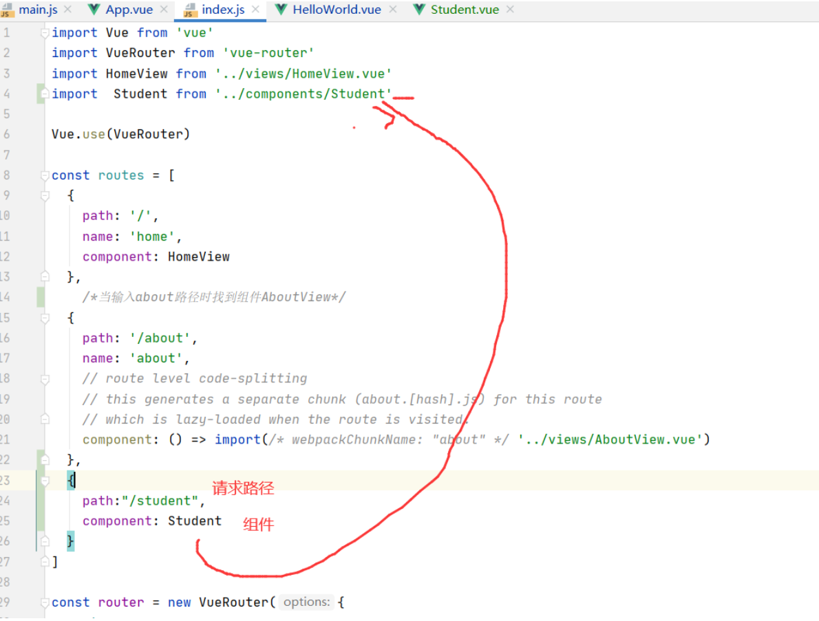 router/index.js 根据请求路径找到对应的组件. 但是找到后无法渲染它。