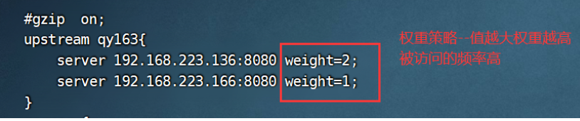 默认的负载均衡策略: 轮询策略。 在真实开发时可能服务的配置不同,服务器配置高的并发能力强,配置低的并发能力弱。 在负载均衡时,让请求多请求配置高的服务器。我们可以修改负载均衡的策略---权重。